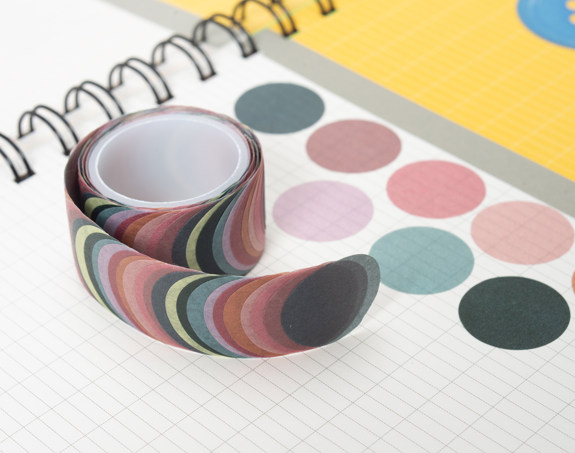 롤에는 10가지 디자인의 라이스페이퍼 원형 스티커 200장이 들어 있으며,