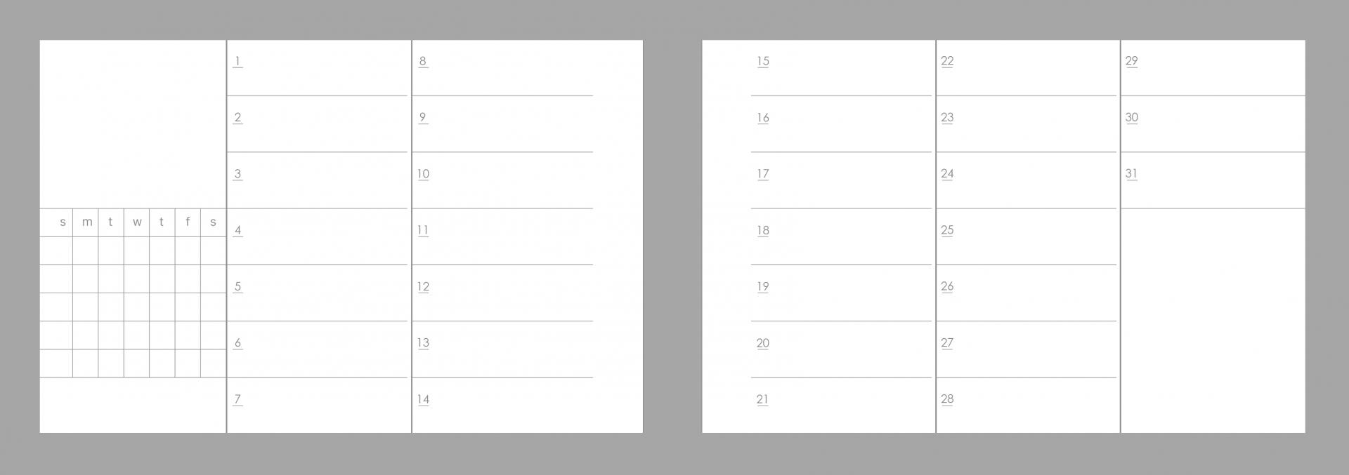 내지는 노트를 펼쳤을 때 디자인입니다.