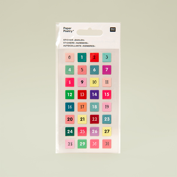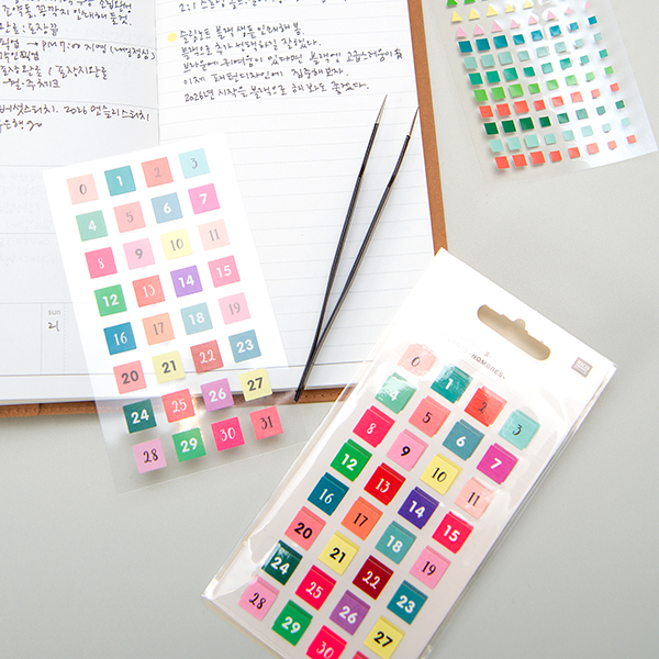 9.5X9.5mm 크기의 숫자 스티커로 0~31 까지 총128개의 스티커가 들어있습니다.