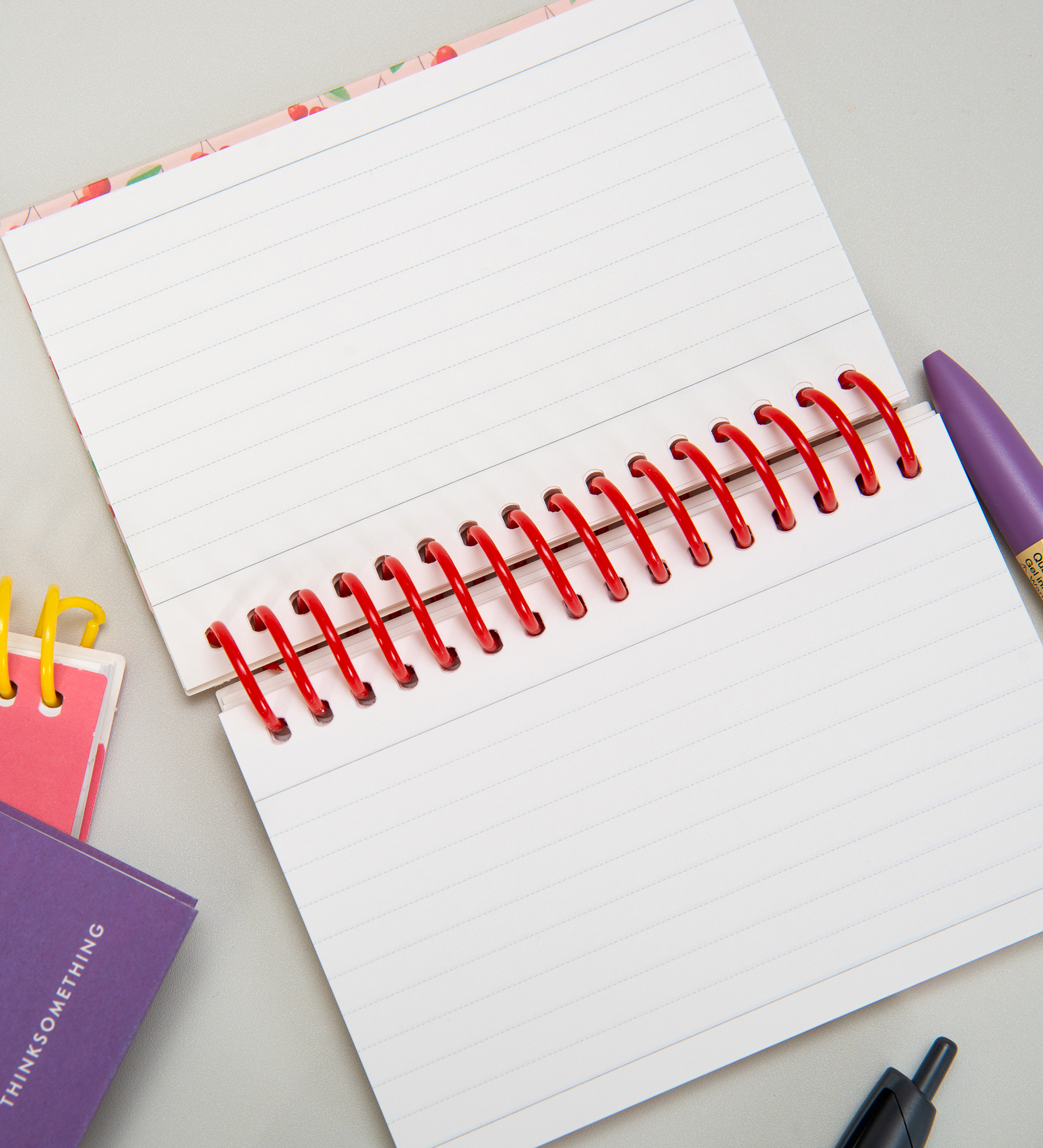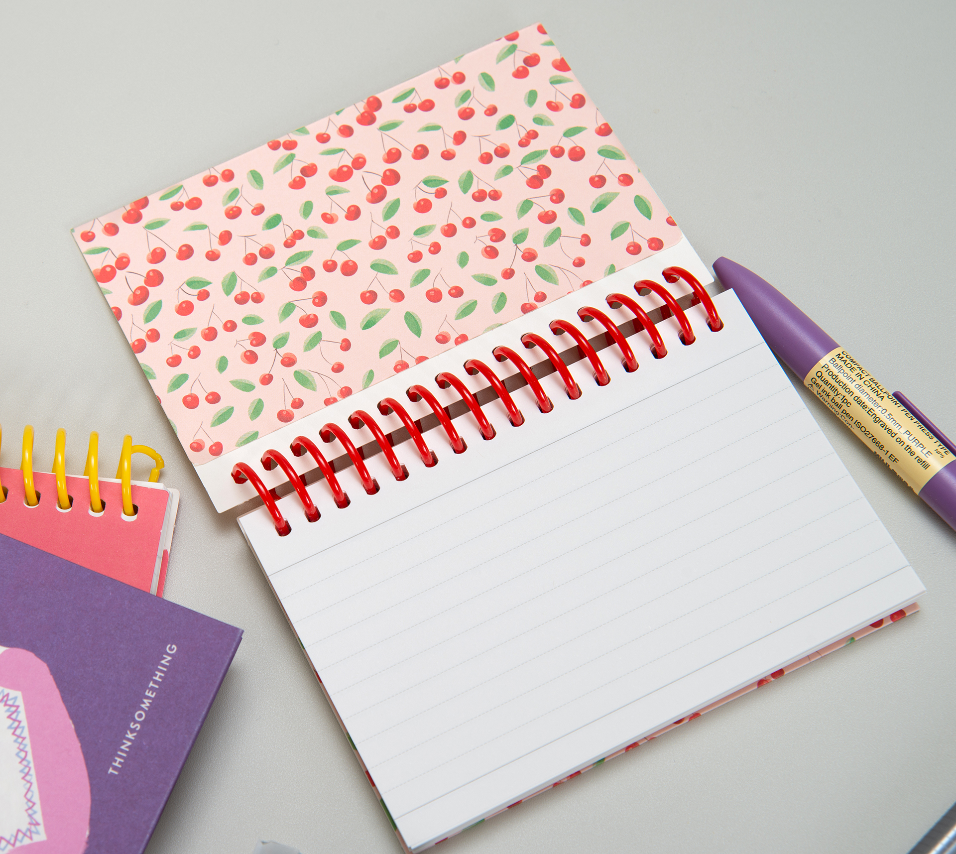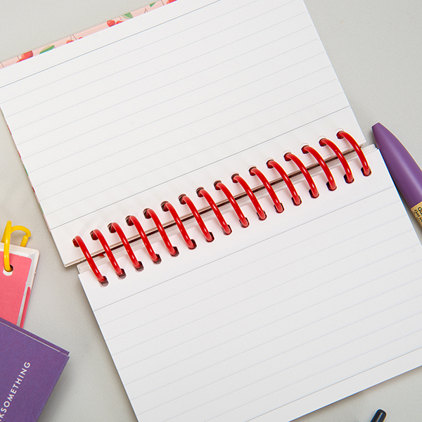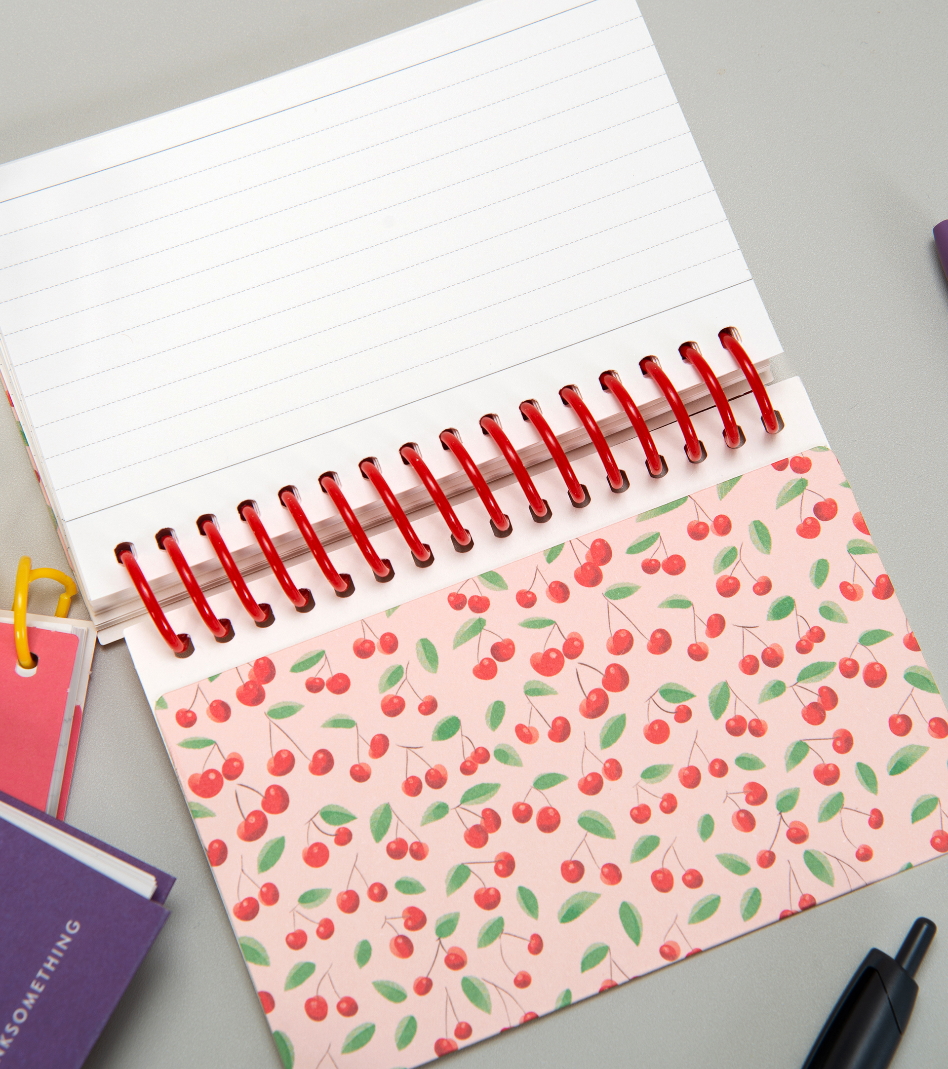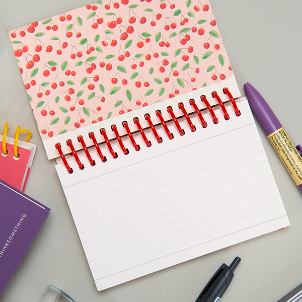 이 노트는 종이의 부드러운 촉감과 은은한 색감으로 인해 텍스트와 체리 일러스트가 레트로한 느낌을 줍니다.