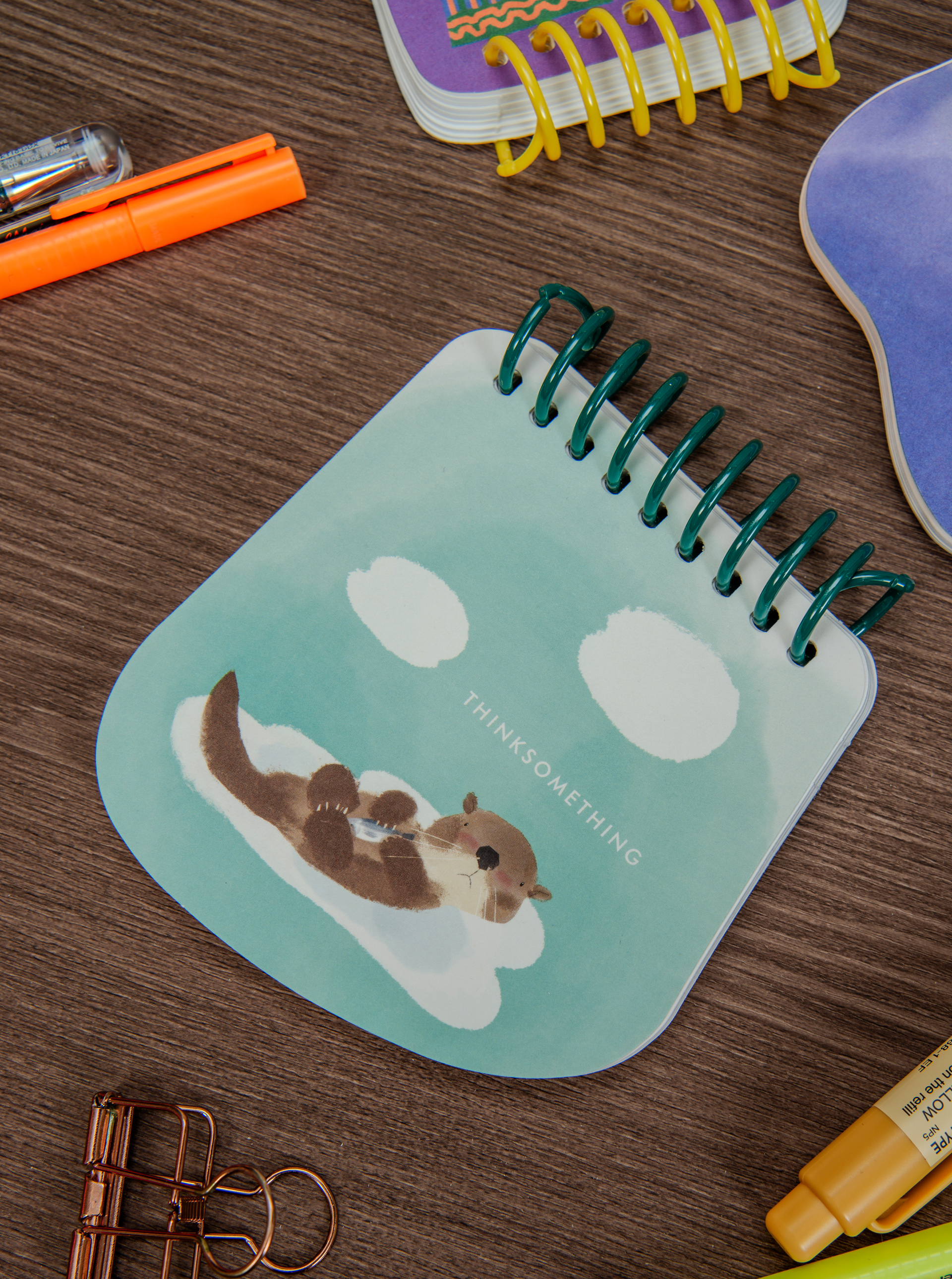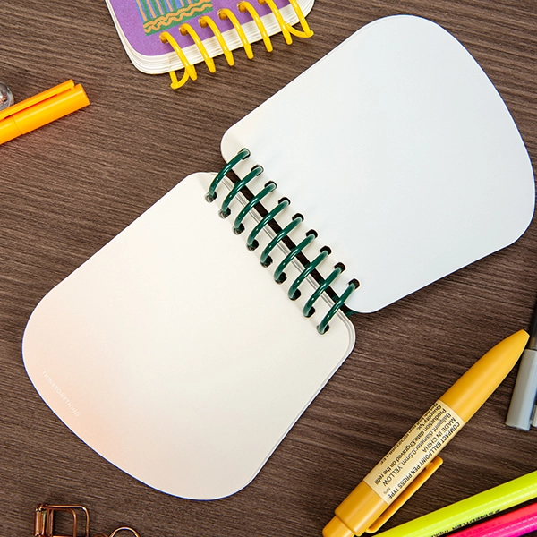 복숭빛 컬러가 은은하게 인쇄되어 있으며, 360도 펼침이 가능한 코일링이 모양노트에 재미를 더했습니다.