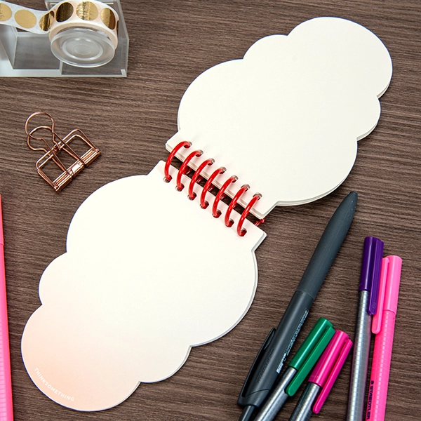 복숭빛 컬러가 은은하게 인쇄되어 있으며, 360도 펼침이 가능한 코일링이 모양노트에 재미를 더했습니다.